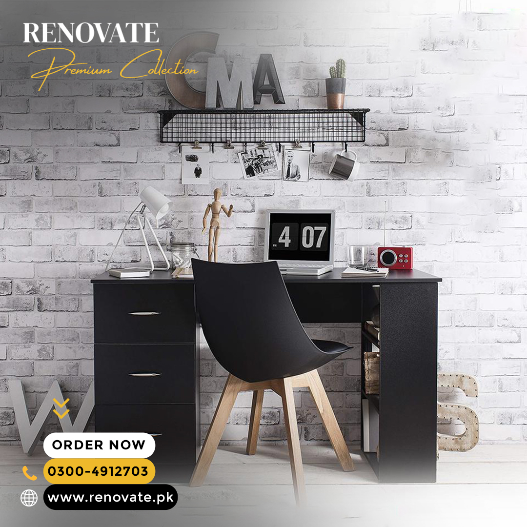 42 inches length, 22 inches depth and 32 inches height of study table top made in patex board sheet with wrought iron base and powder coated black. Color and Shades are chosen as per requirement.