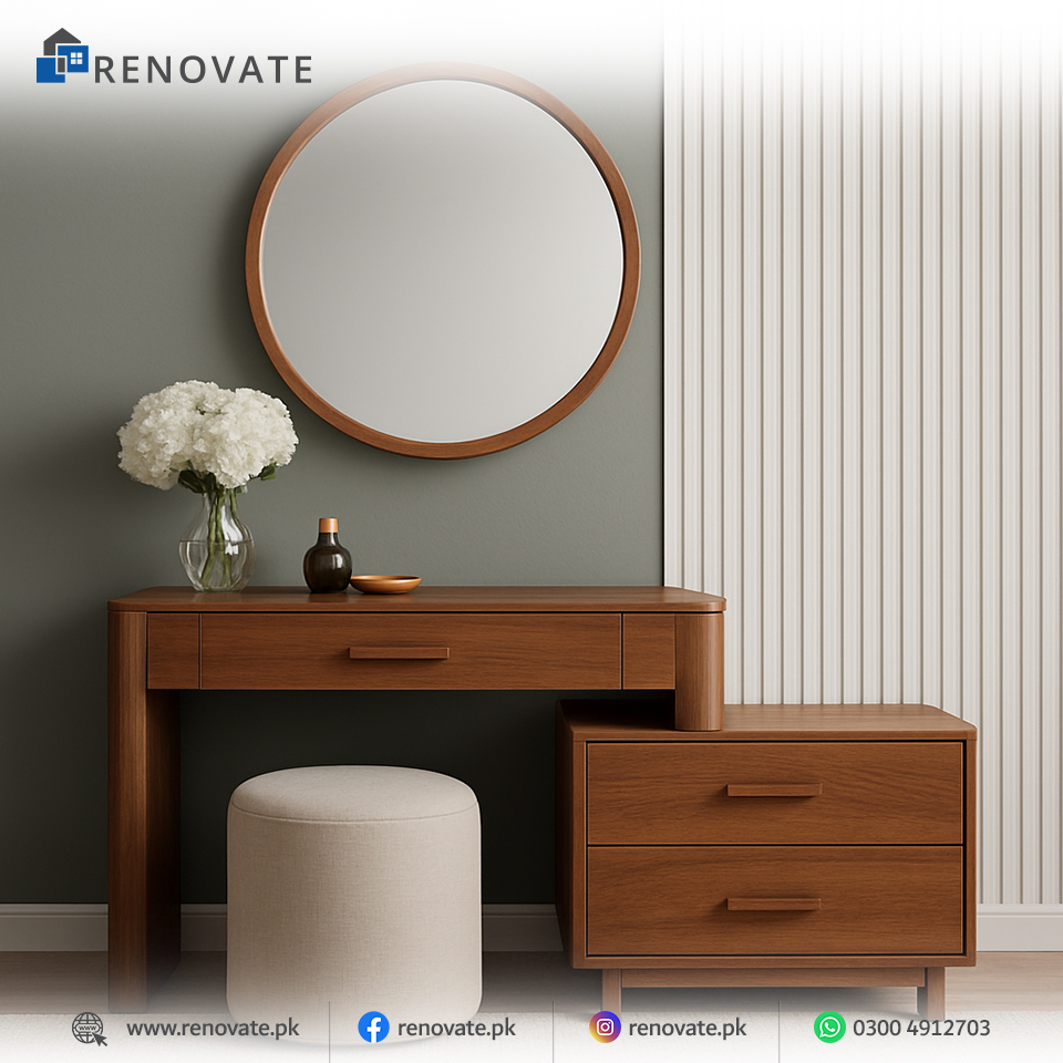 Dressing Table + Mirror: 4ft length, 30 inches height and 16 inches depth