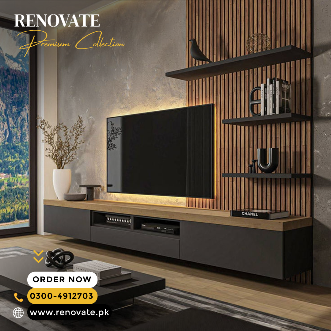 10ft length and 10ft height of media wall made in PVC Panels and MDF Sheets. Shadow lights included.