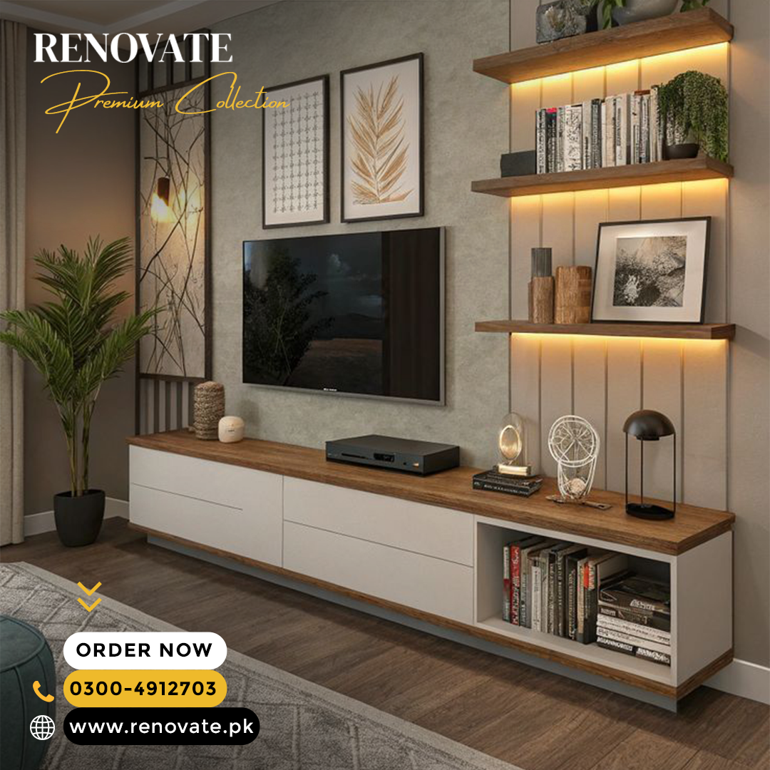7ft length and 7ft height of media wall made in MDF Sheets .