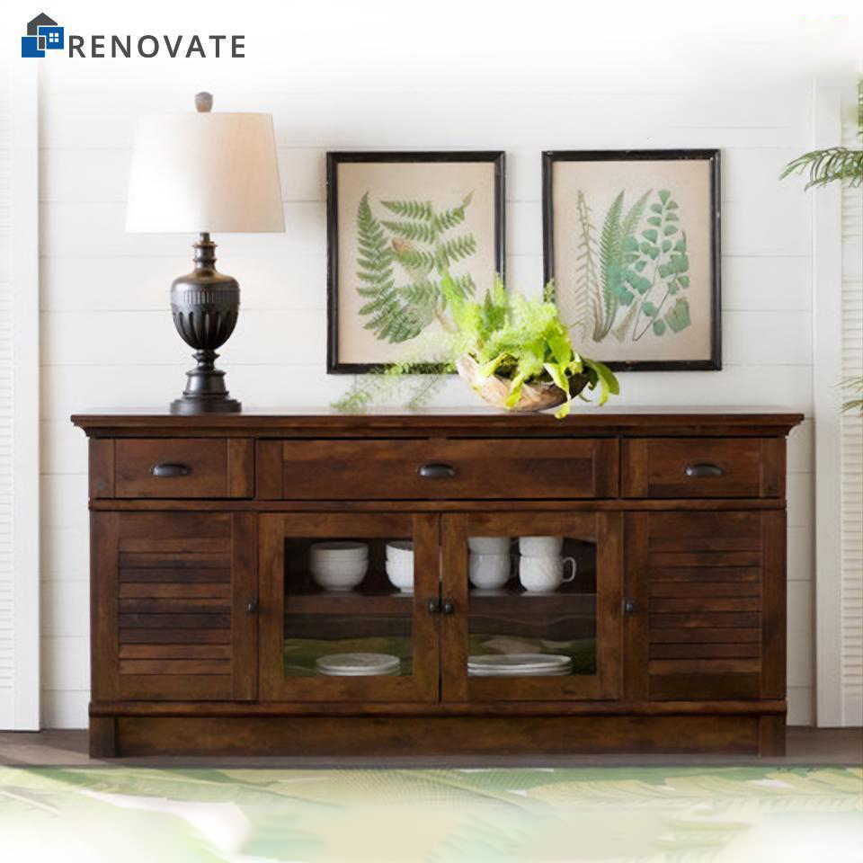 Crockery Unit 30 inches height, 60 inches length and 18 inches depth. Made in sheesham wooden frame, sheesham ply + chalk polish as per requirement.