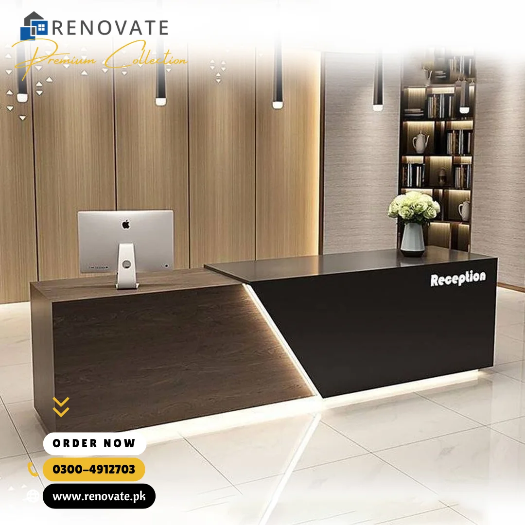 8ft by 2ft dimensions of the top with 30 inches base height and 38 inches total height. Made in acrylic and Patex board. Shades and colors chosen as per requirement